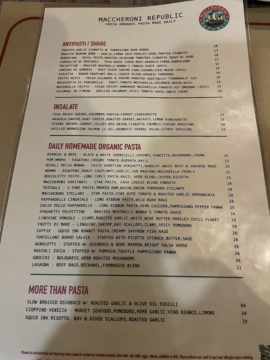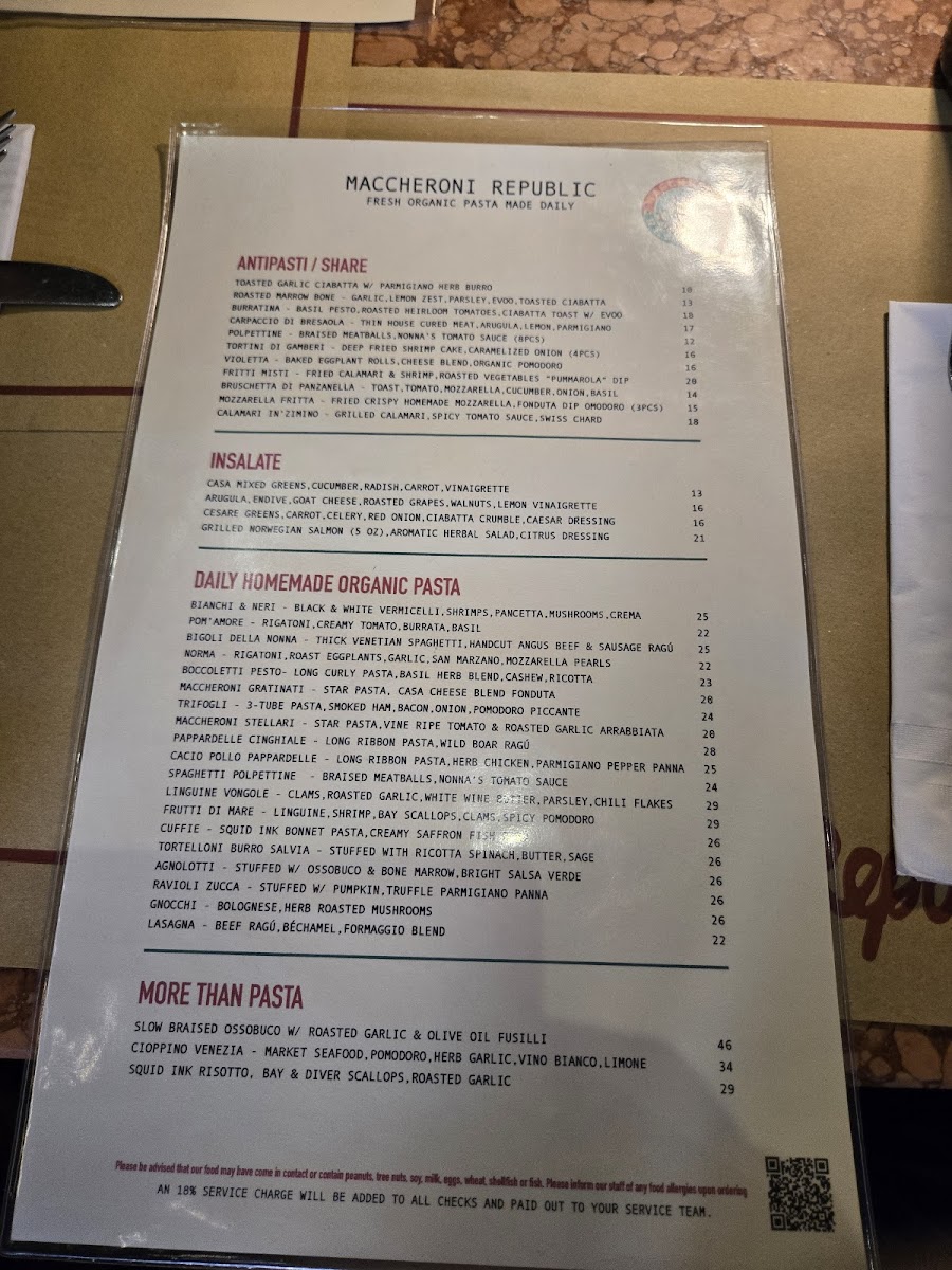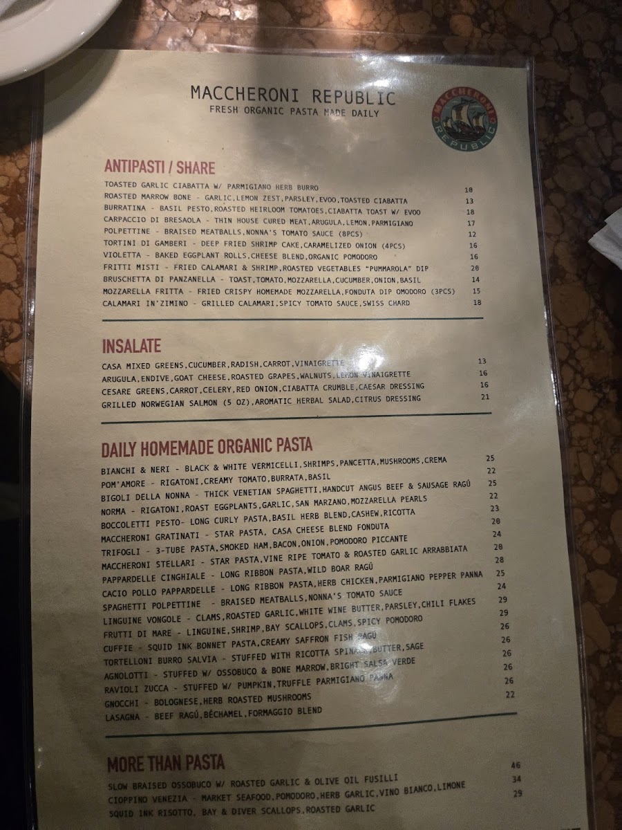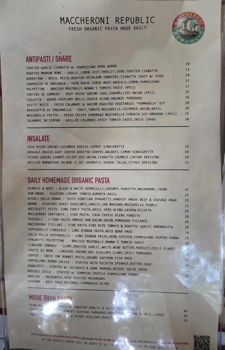 Maccheroni Republic Menu