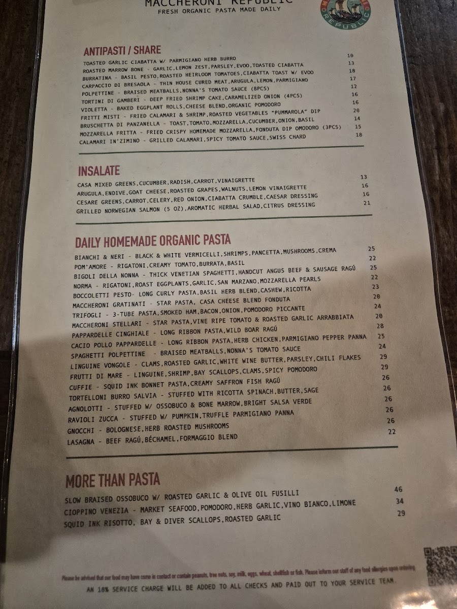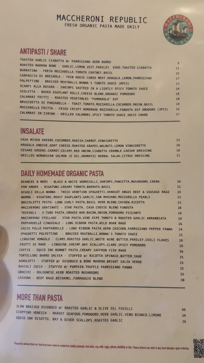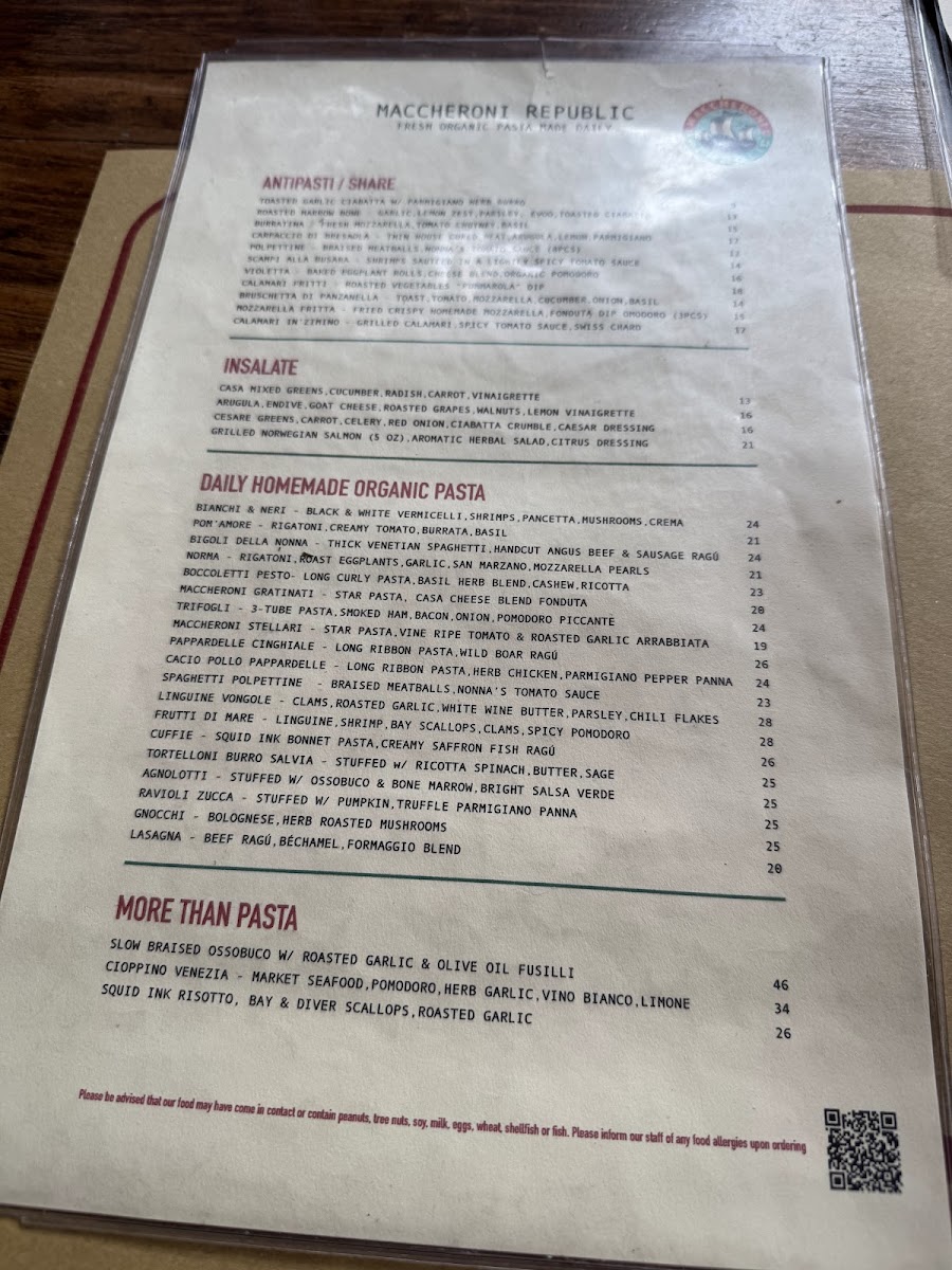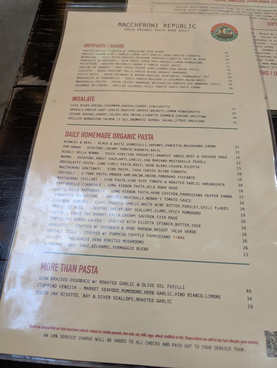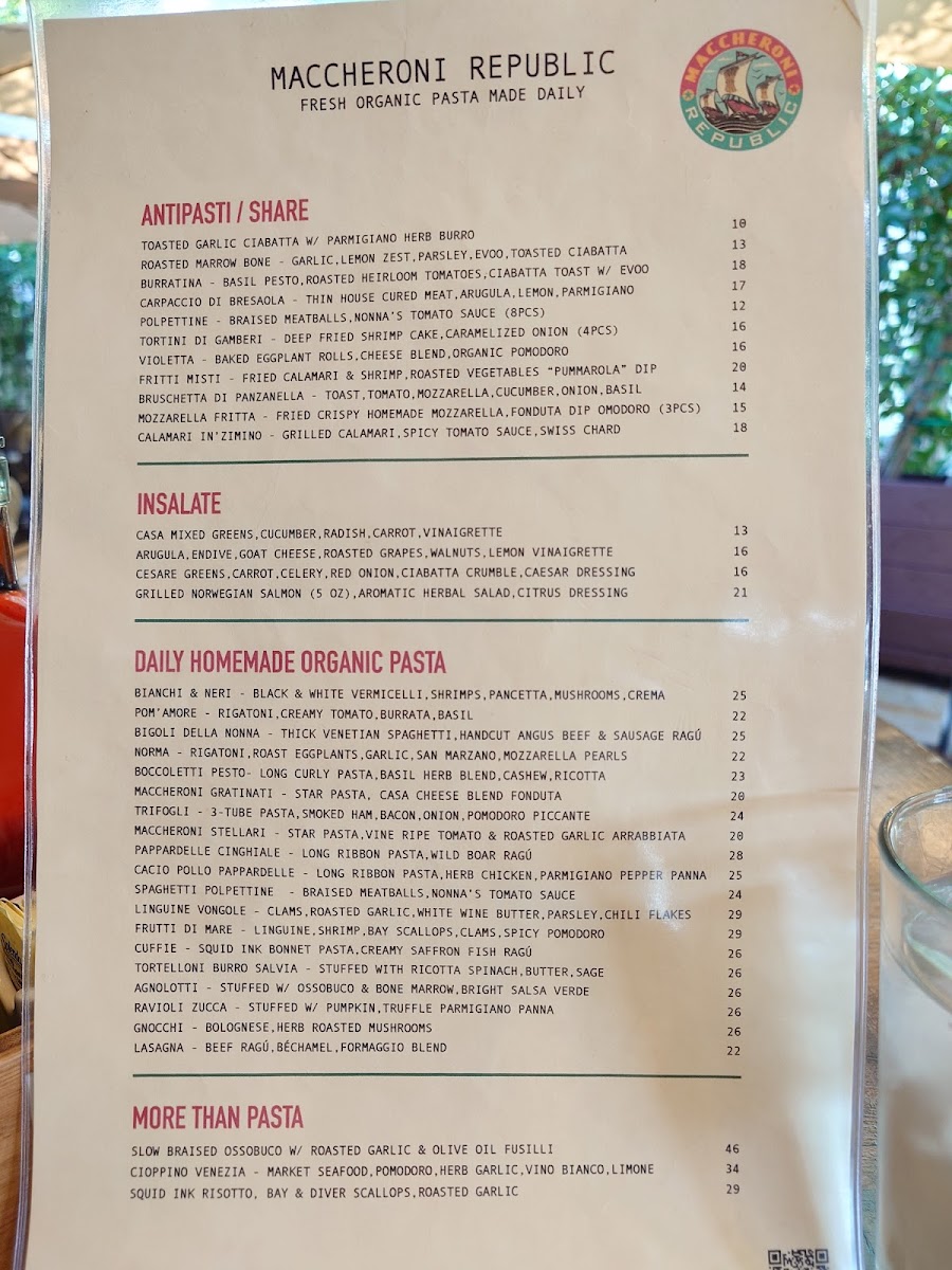 Maccheroni Republic Menu